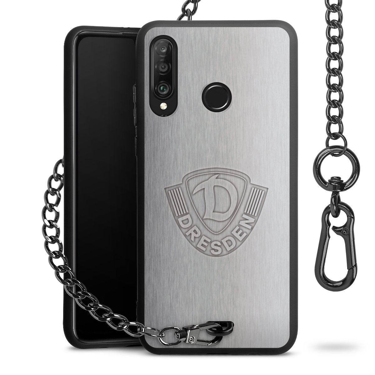 Die mattschwarze Silikon-Handyhülle besteht aus robustem TPU (thermoplastisches Polyurethan). Sie ist flexibel und schützt Dein Smartphone vor Stößen und Kratzern. Die Kette sowie der Karabinerhaken sind aus Metall in Gunmetal-Optik gefertigt. Für dieses Produkt kommen ausschließlich TÜV-geprüfte Materialien zum Einsatz.
