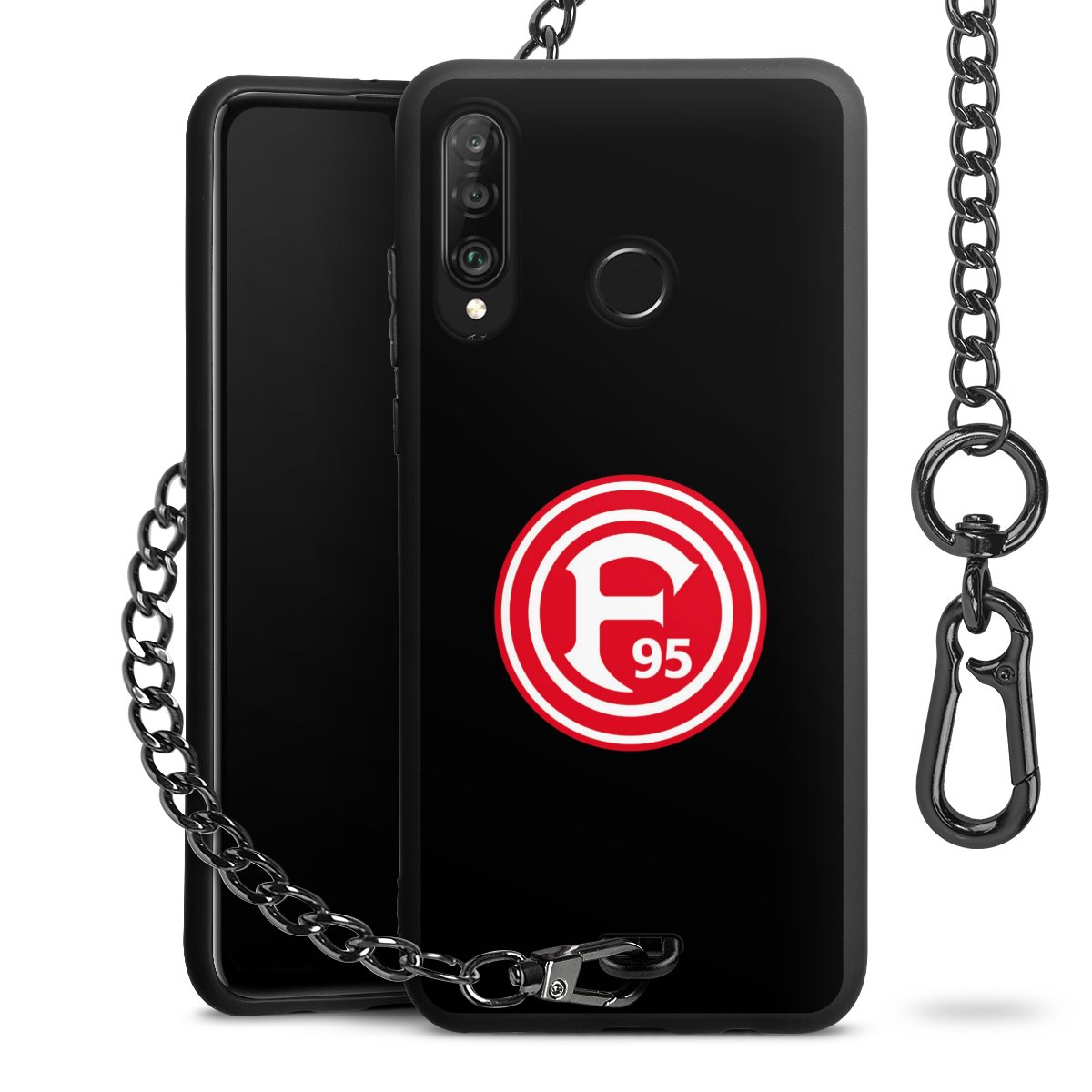 Die Handyhülle verfügt über eine mittig am unteren Rand platzierte Öse, an der die Metallkette stabil befestigt ist. Bestelle die Hülle einfach für Dein Smartphone-Modell, dann passt sie wie angegossen und Du brauchst sie bloß einmal anzudrücken. Handy in die Tasche, Karabiner an den Hosenbund – schon kann die Party starten.