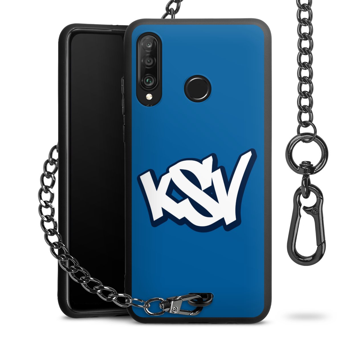 Die Handyhülle verfügt über eine mittig am unteren Rand platzierte Öse, an der die Metallkette stabil befestigt ist. Bestelle die Hülle einfach für Dein Smartphone-Modell, dann passt sie wie angegossen und Du brauchst sie bloß einmal anzudrücken. Handy in die Tasche, Karabiner an den Hosenbund – schon kann die Party starten.