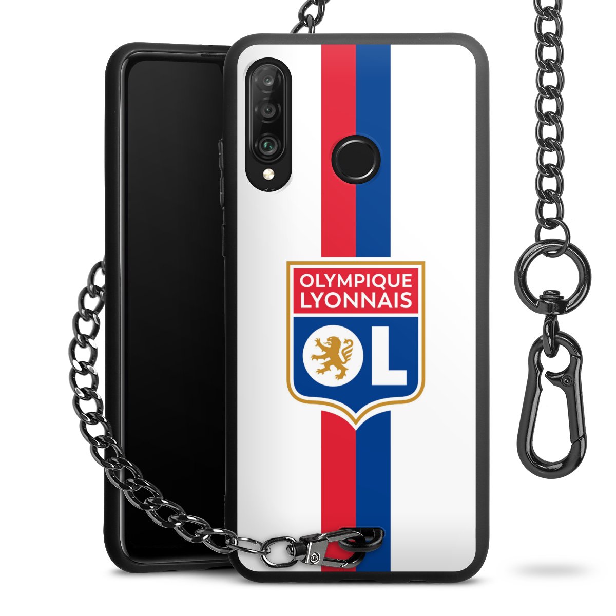 Die Handyhülle verfügt über eine mittig am unteren Rand platzierte Öse, an der die Metallkette stabil befestigt ist. Bestelle die Hülle einfach für Dein Smartphone-Modell, dann passt sie wie angegossen und Du brauchst sie bloß einmal anzudrücken. Handy in die Tasche, Karabiner an den Hosenbund – schon kann die Party starten.