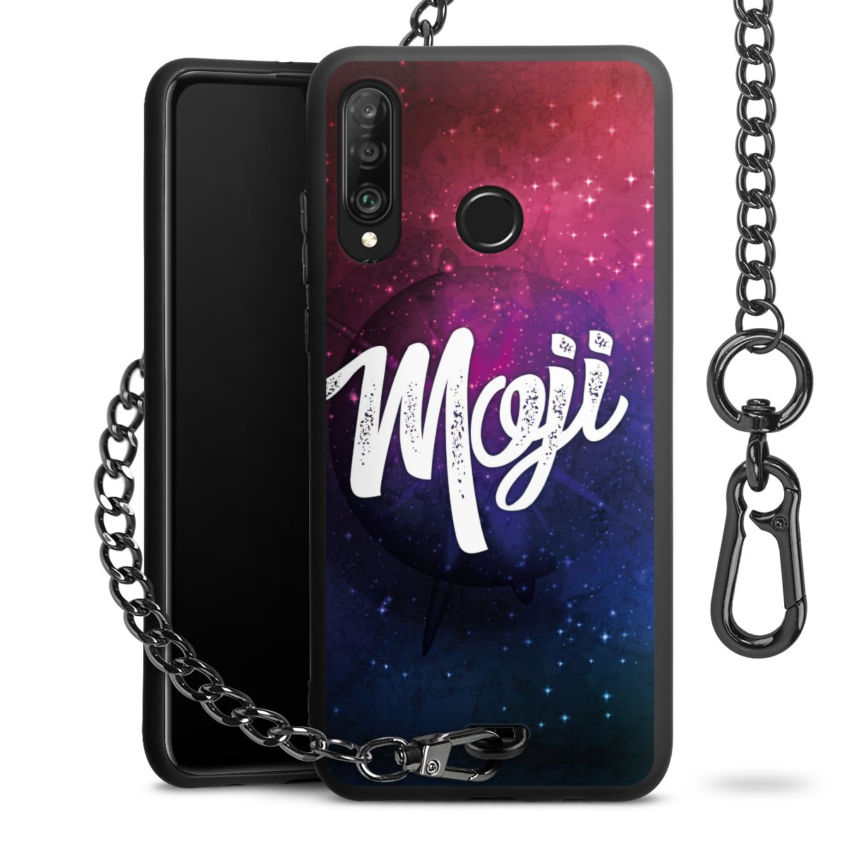 • Mattschwarze Handyhülle mit Metallkette