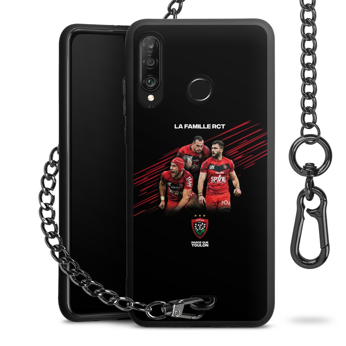 • Mattschwarze Handyhülle mit Metallkette