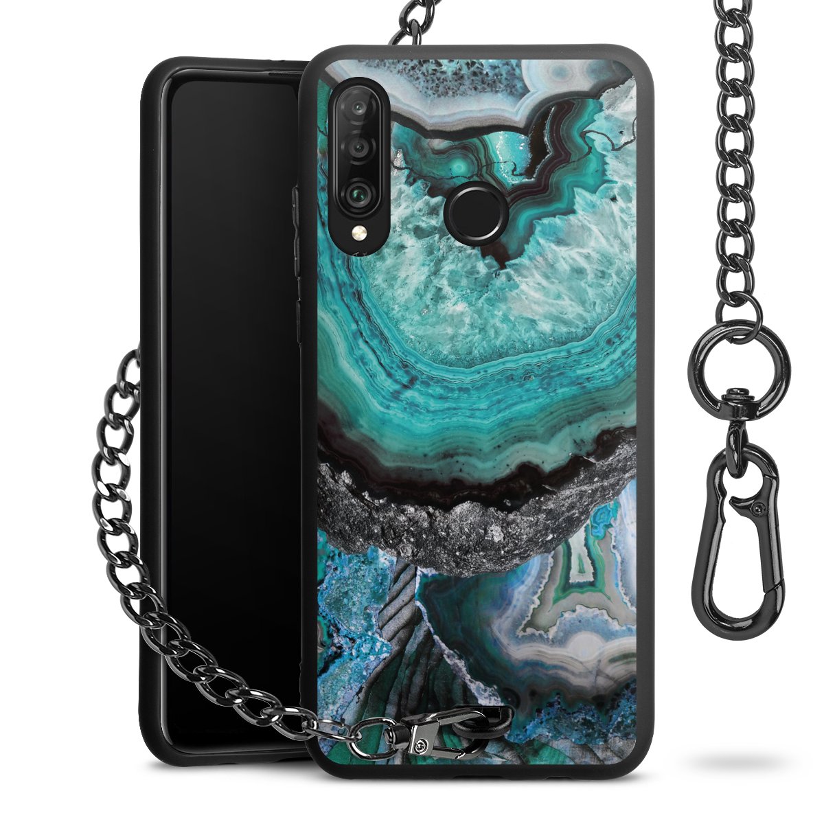 • Mattschwarze Handyhülle mit Metallkette