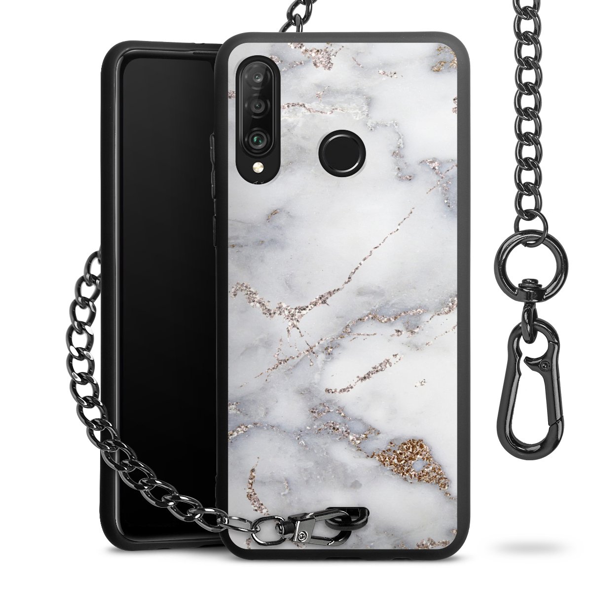 Die mattschwarze Silikon-Handyhülle besteht aus robustem TPU (thermoplastisches Polyurethan). Sie ist flexibel und schützt Dein Smartphone vor Stößen und Kratzern. Die Kette sowie der Karabinerhaken sind aus Metall in Gunmetal-Optik gefertigt. Für dieses Produkt kommen ausschließlich TÜV-geprüfte Materialien zum Einsatz.