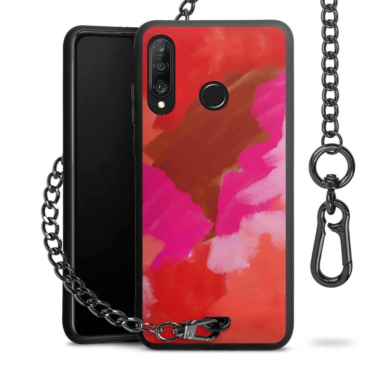 • Mattschwarze Handyhülle mit Metallkette