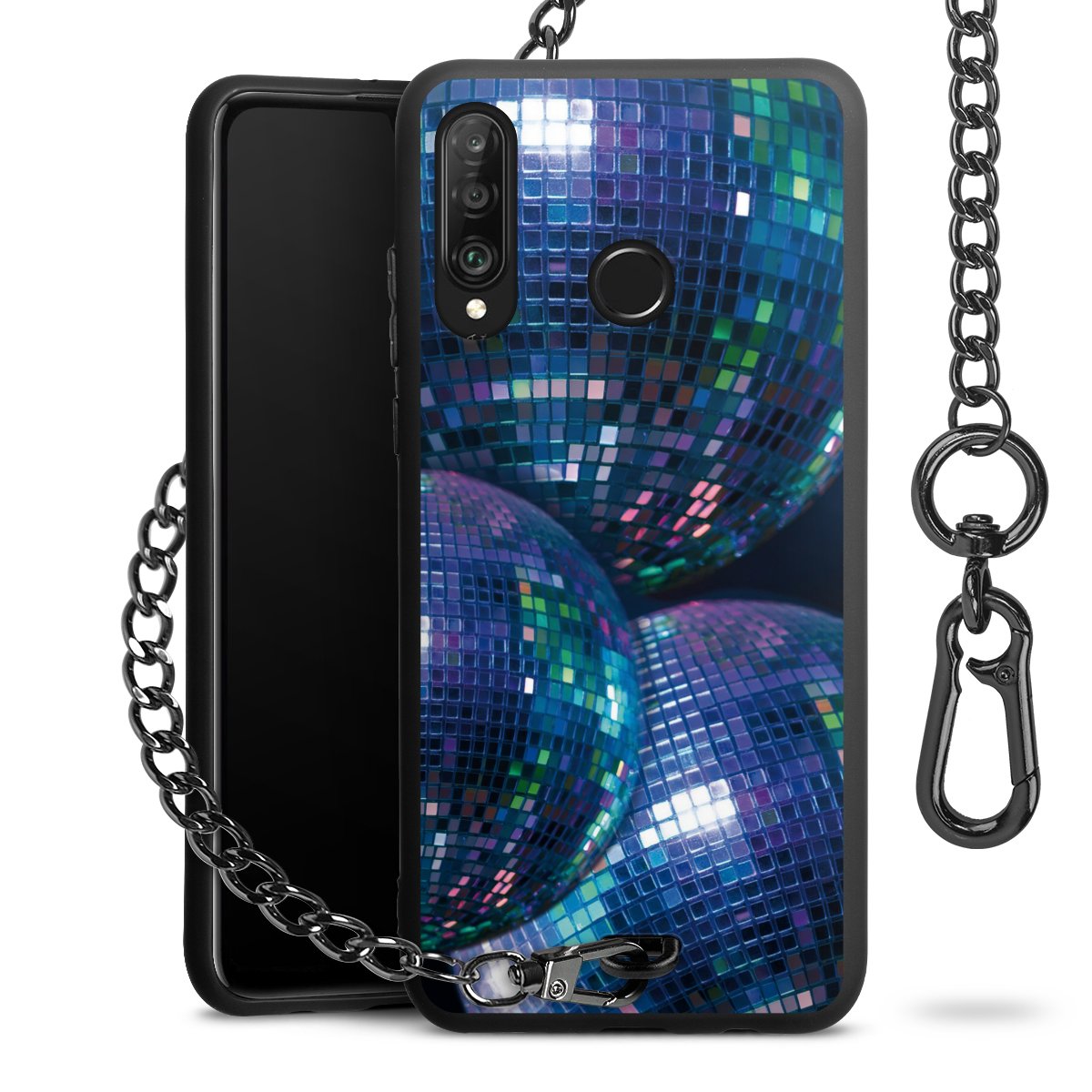 Die Handyhülle verfügt über eine mittig am unteren Rand platzierte Öse, an der die Metallkette stabil befestigt ist. Bestelle die Hülle einfach für Dein Smartphone-Modell, dann passt sie wie angegossen und Du brauchst sie bloß einmal anzudrücken. Handy in die Tasche, Karabiner an den Hosenbund – schon kann die Party starten.