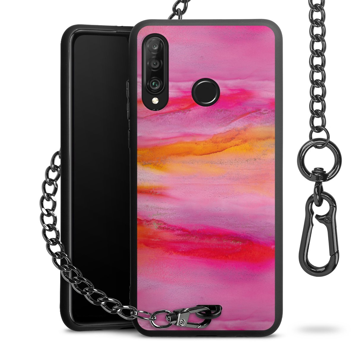 • Mattschwarze Handyhülle mit Metallkette