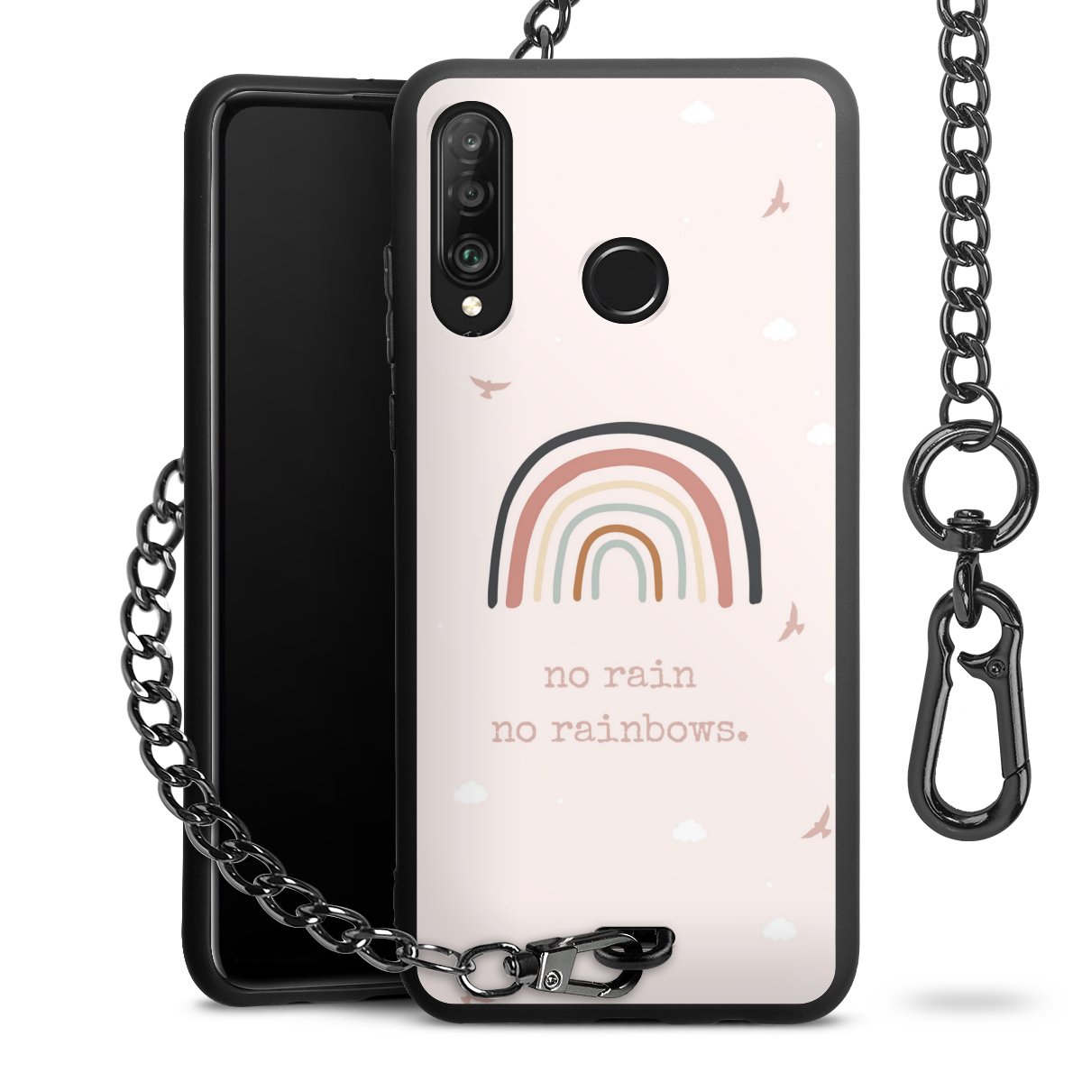 - Mattschwarze Handyhülle mit Metallkette