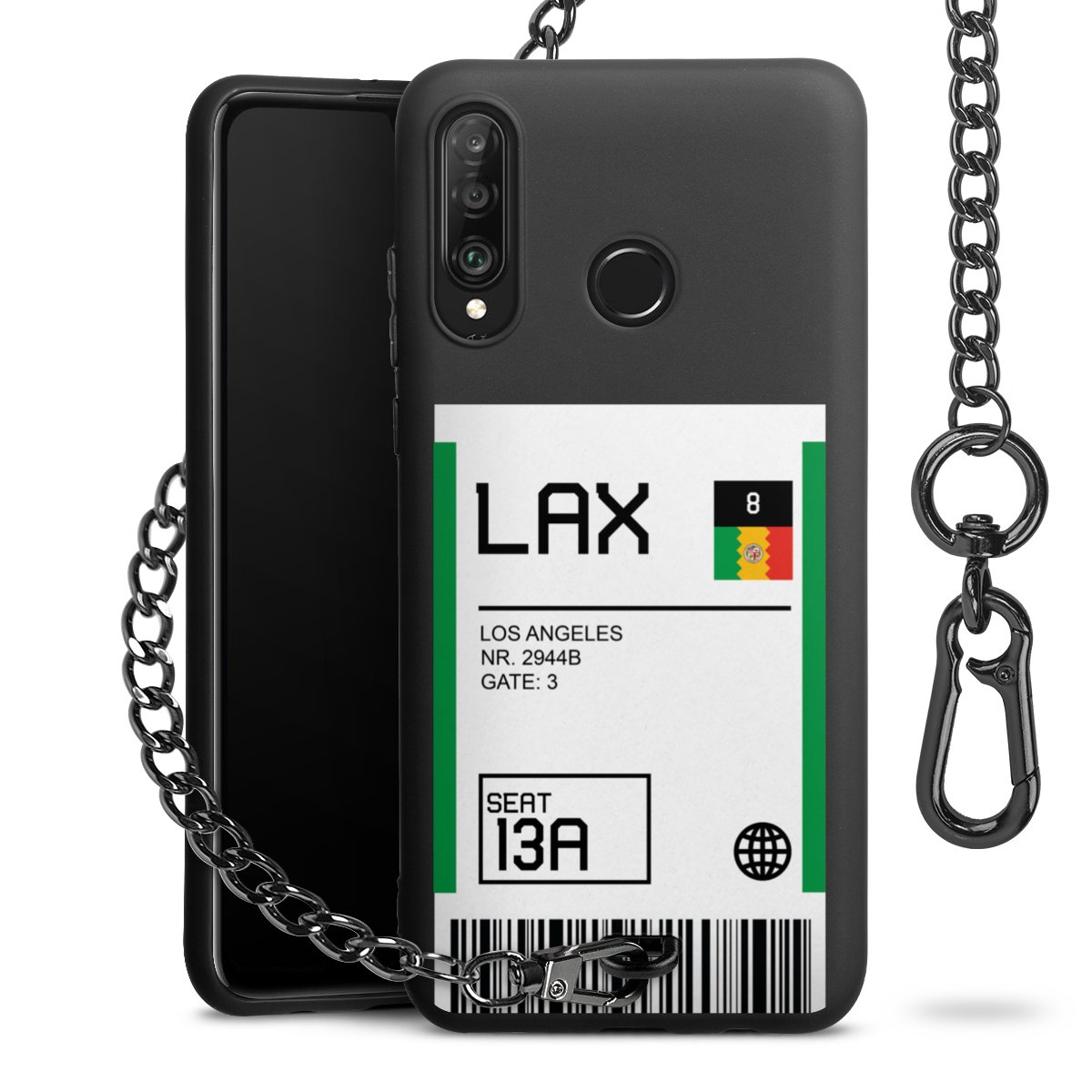 • Mattschwarze Handyhülle mit Metallkette