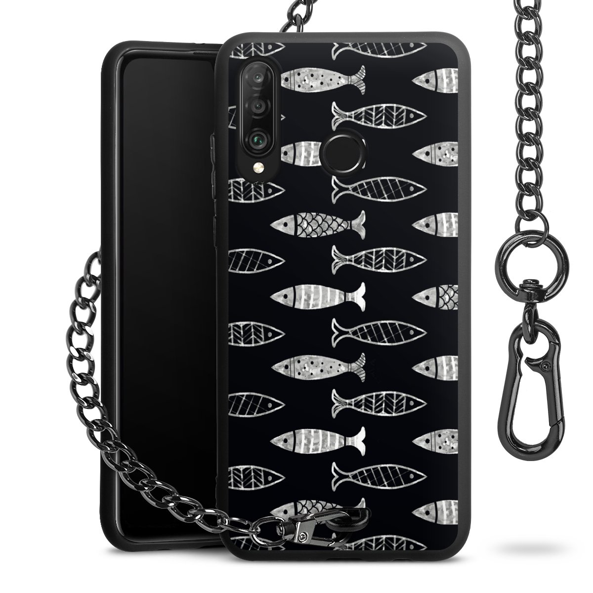 • Mattschwarze Handyhülle mit Metallkette