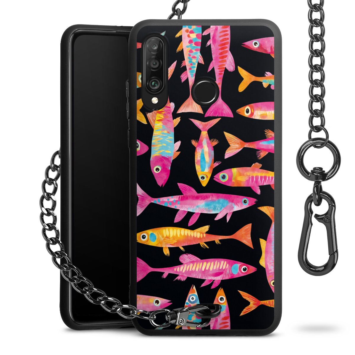 • Mattschwarze Handyhülle mit Metallkette