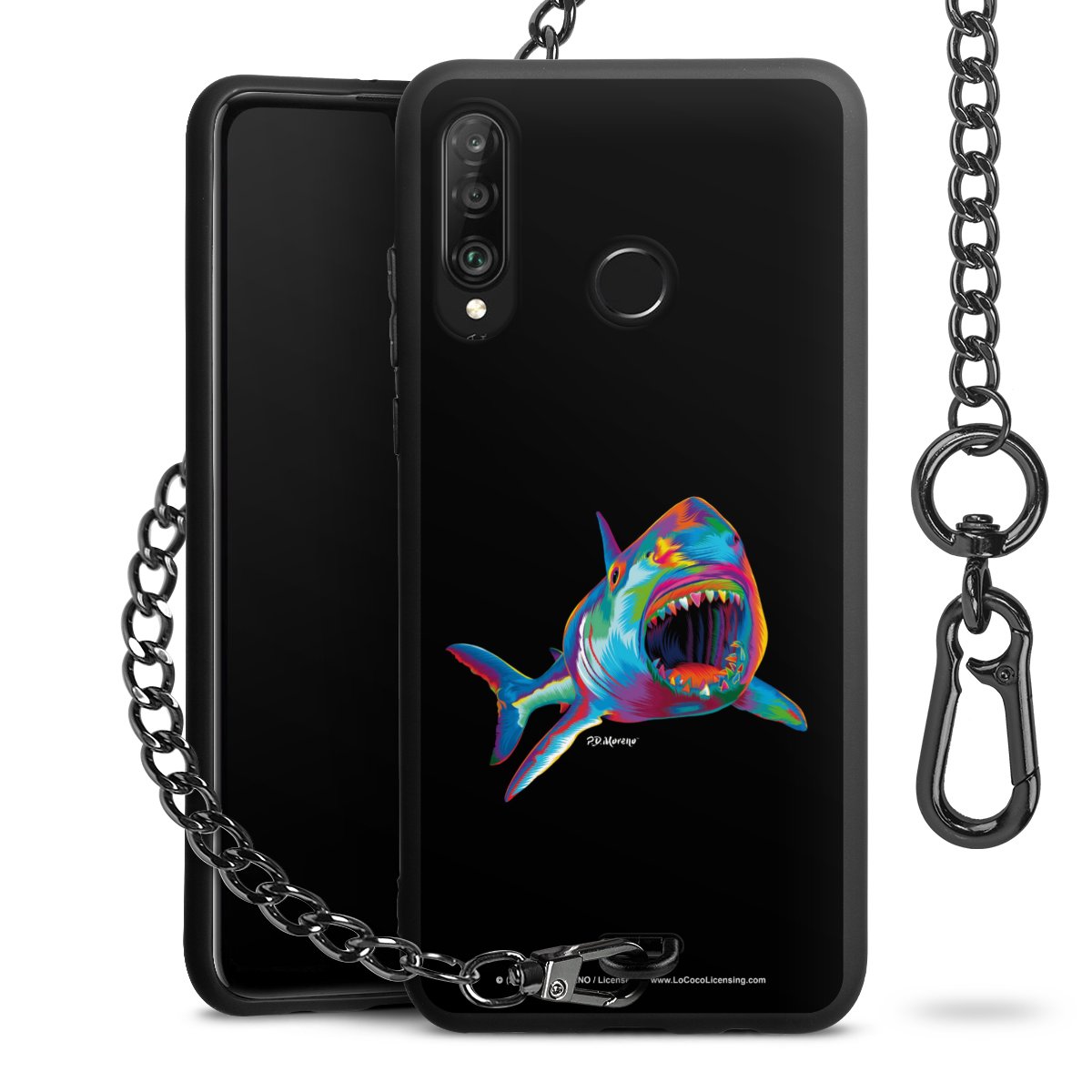 Die Handyhülle verfügt über eine mittig am unteren Rand platzierte Öse, an der die Metallkette stabil befestigt ist. Bestelle die Hülle einfach für Dein Smartphone-Modell, dann passt sie wie angegossen und Du brauchst sie bloß einmal anzudrücken. Handy in die Tasche, Karabiner an den Hosenbund – schon kann die Party starten.