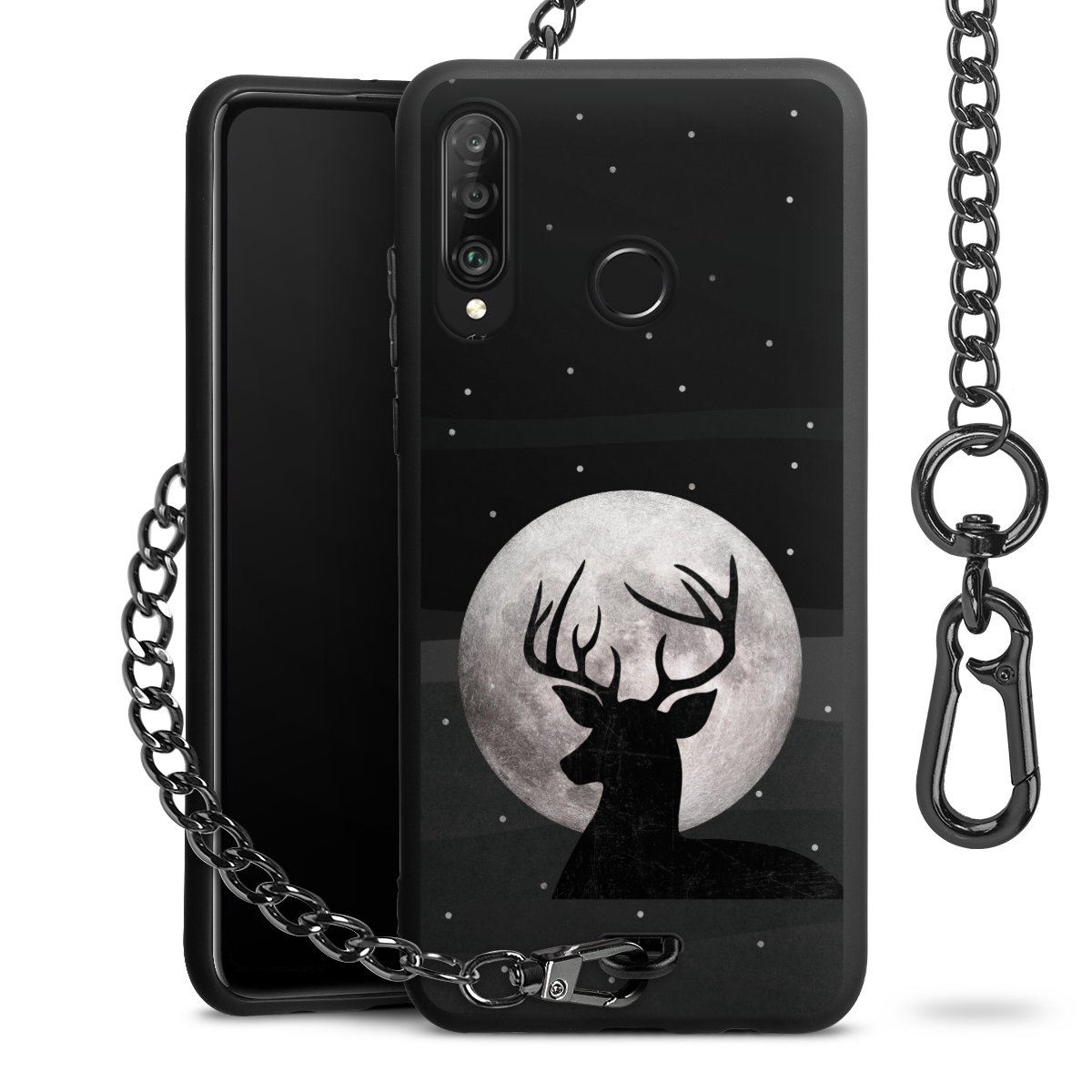 • Mattschwarze Handyhülle mit Metallkette