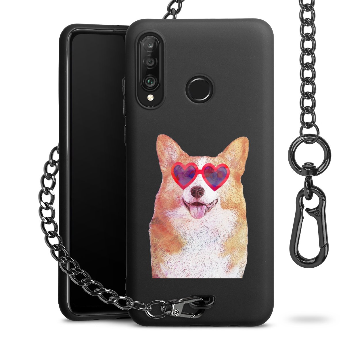 • Mattschwarze Handyhülle mit Metallkette