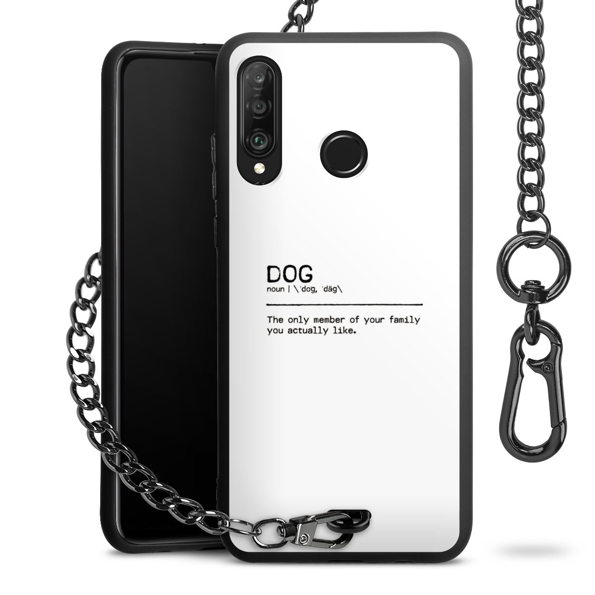 Die Handyhülle verfügt über eine mittig am unteren Rand platzierte Öse, an der die Metallkette stabil befestigt ist. Bestelle die Hülle einfach für Dein Smartphone-Modell, dann passt sie wie angegossen und Du brauchst sie bloß einmal anzudrücken. Handy in die Tasche, Karabiner an den Hosenbund – schon kann die Party starten.