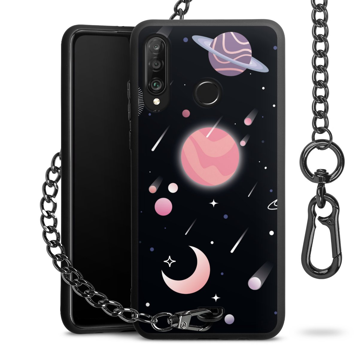 • Mattschwarze Handyhülle mit Metallkette