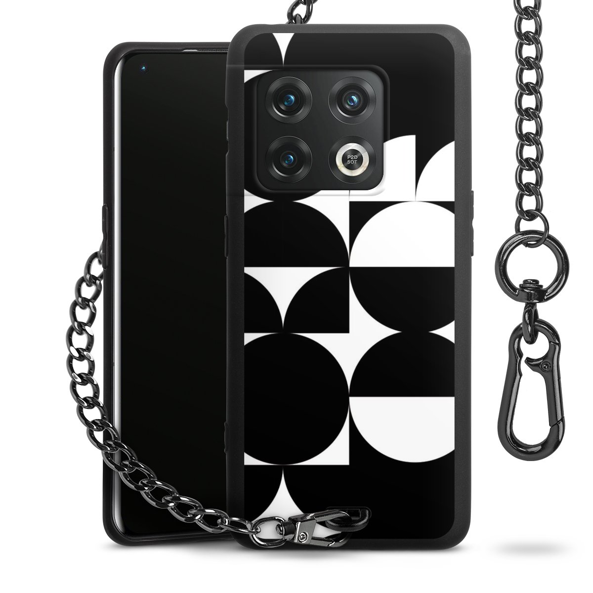- Mattschwarze Handyhülle mit Metallkette