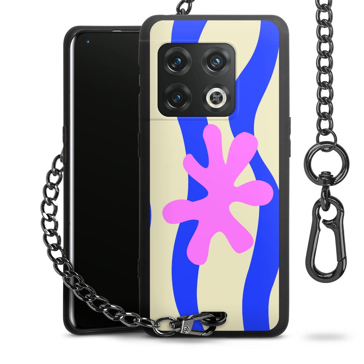 Die Handyhülle verfügt über eine mittig am unteren Rand platzierte Öse, an der die Metallkette stabil befestigt ist. Bestelle die Hülle einfach für Dein Smartphone-Modell, dann passt sie wie angegossen und Du brauchst sie bloß einmal anzudrücken. Handy in die Tasche, Karabiner an den Hosenbund – schon kann die Party starten.