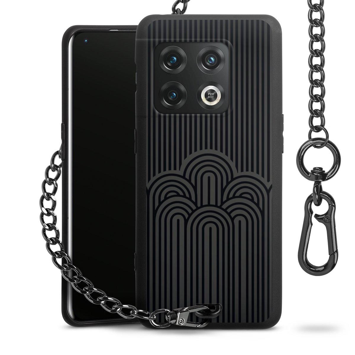 • Mattschwarze Handyhülle mit Metallkette