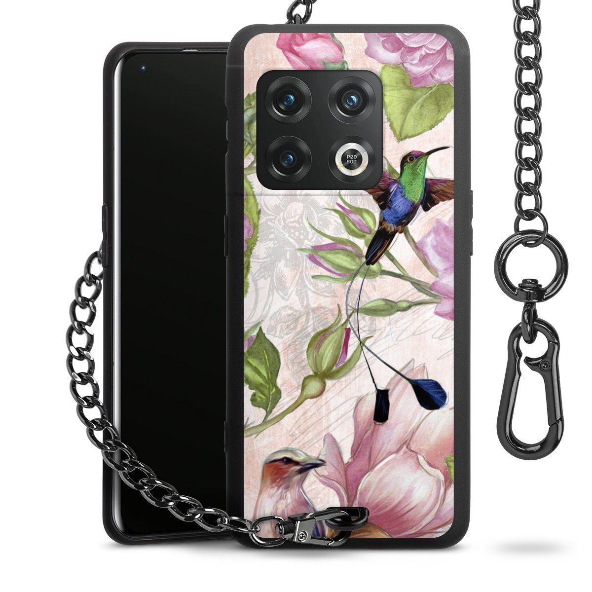 • Mattschwarze Handyhülle mit Metallkette