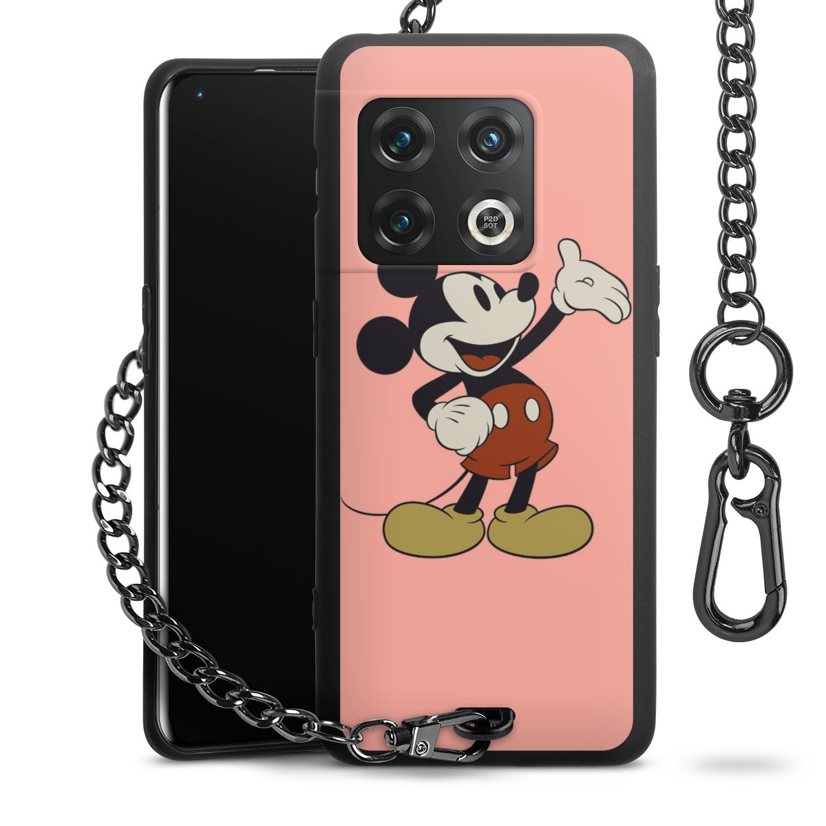 Die Handyhülle verfügt über eine mittig am unteren Rand platzierte Öse, an der die Metallkette stabil befestigt ist. Bestelle die Hülle einfach für Dein Smartphone-Modell, dann passt sie wie angegossen und Du brauchst sie bloß einmal anzudrücken. Handy in die Tasche, Karabiner an den Hosenbund – schon kann die Party starten.