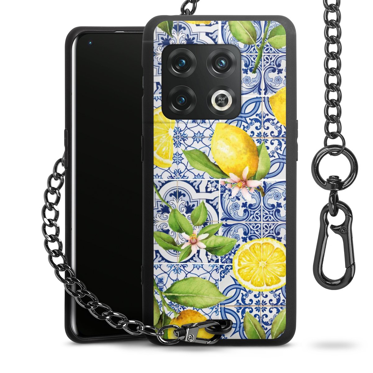 • Mattschwarze Handyhülle mit Metallkette