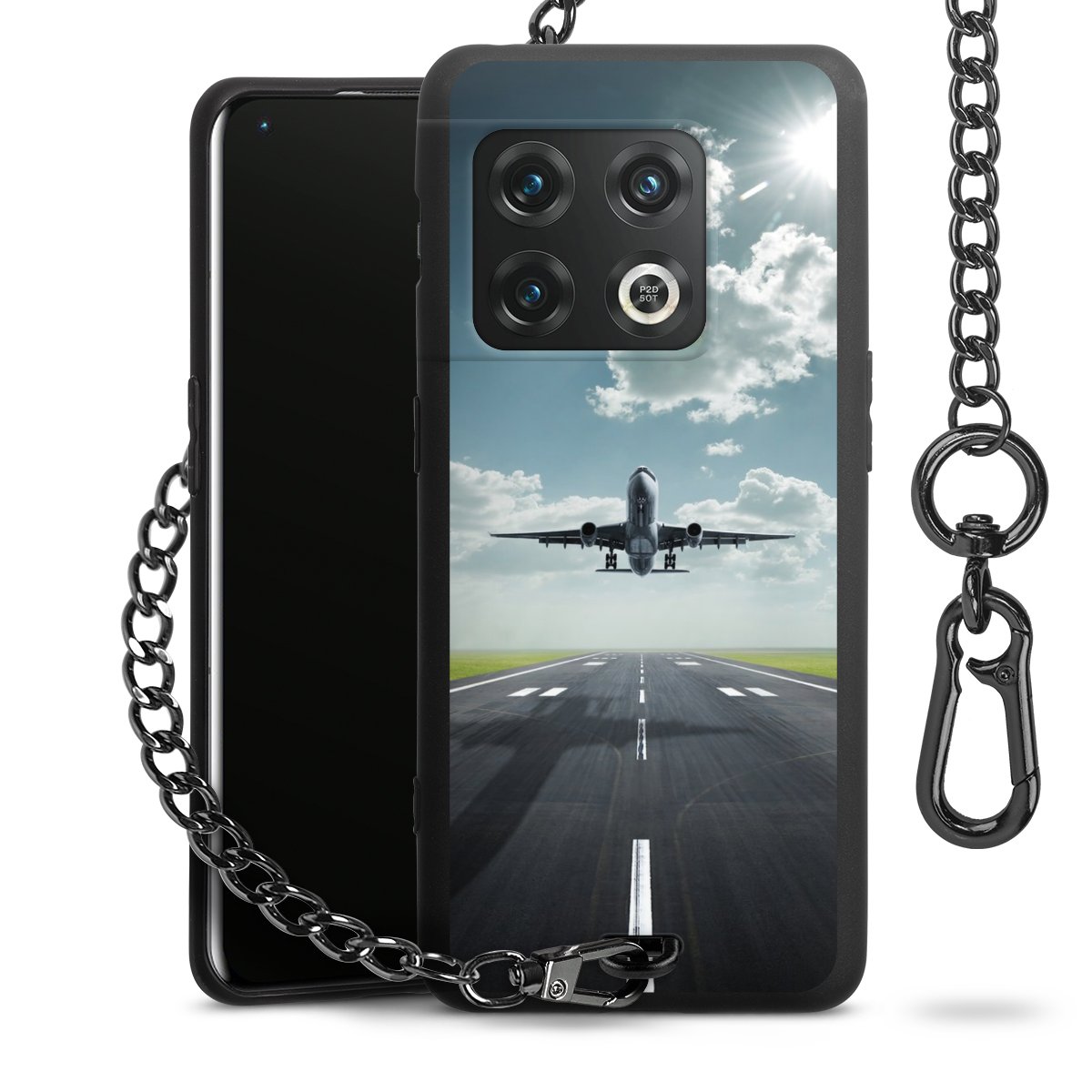 • Mattschwarze Handyhülle mit Metallkette