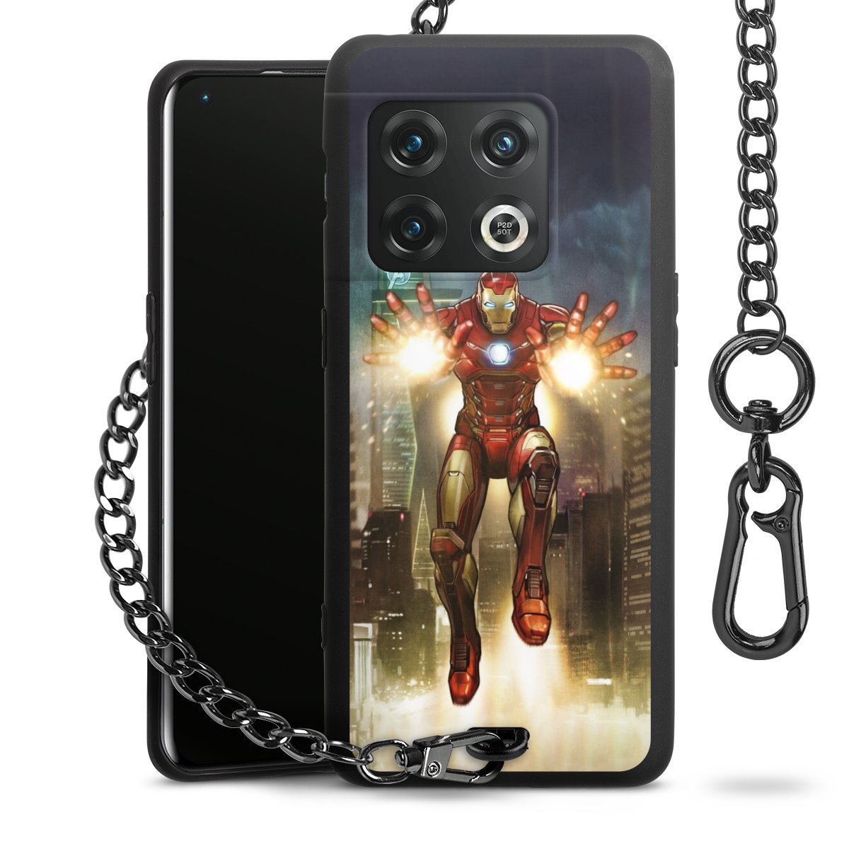 • Mattschwarze Handyhülle mit Metallkette