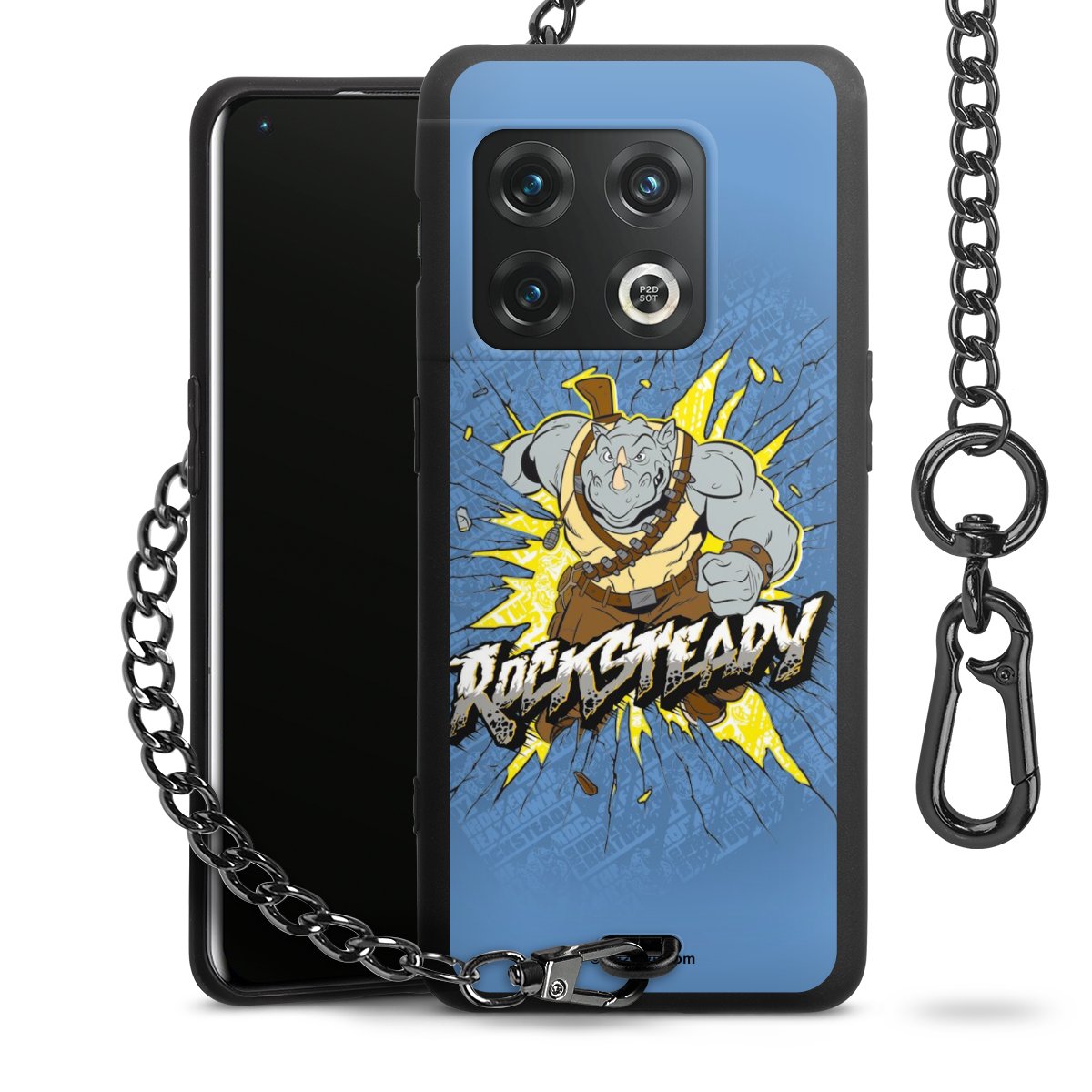 Die mattschwarze Silikon-Handyhülle besteht aus robustem TPU (thermoplastisches Polyurethan). Sie ist flexibel und schützt Dein Smartphone vor Stößen und Kratzern. Die Kette sowie der Karabinerhaken sind aus Metall in Gunmetal-Optik gefertigt. Für dieses Produkt kommen ausschließlich TÜV-geprüfte Materialien zum Einsatz.