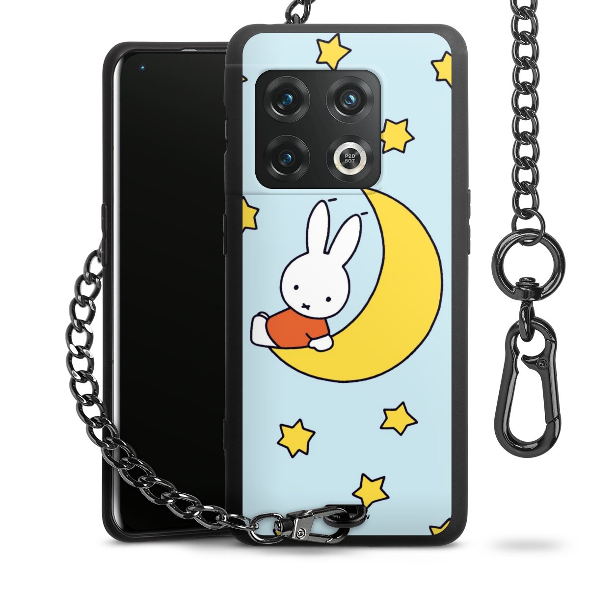 Die Handyhülle verfügt über eine mittig am unteren Rand platzierte Öse, an der die Metallkette stabil befestigt ist. Bestelle die Hülle einfach für Dein Smartphone-Modell, dann passt sie wie angegossen und Du brauchst sie bloß einmal anzudrücken. Handy in die Tasche, Karabiner an den Hosenbund – schon kann die Party starten.