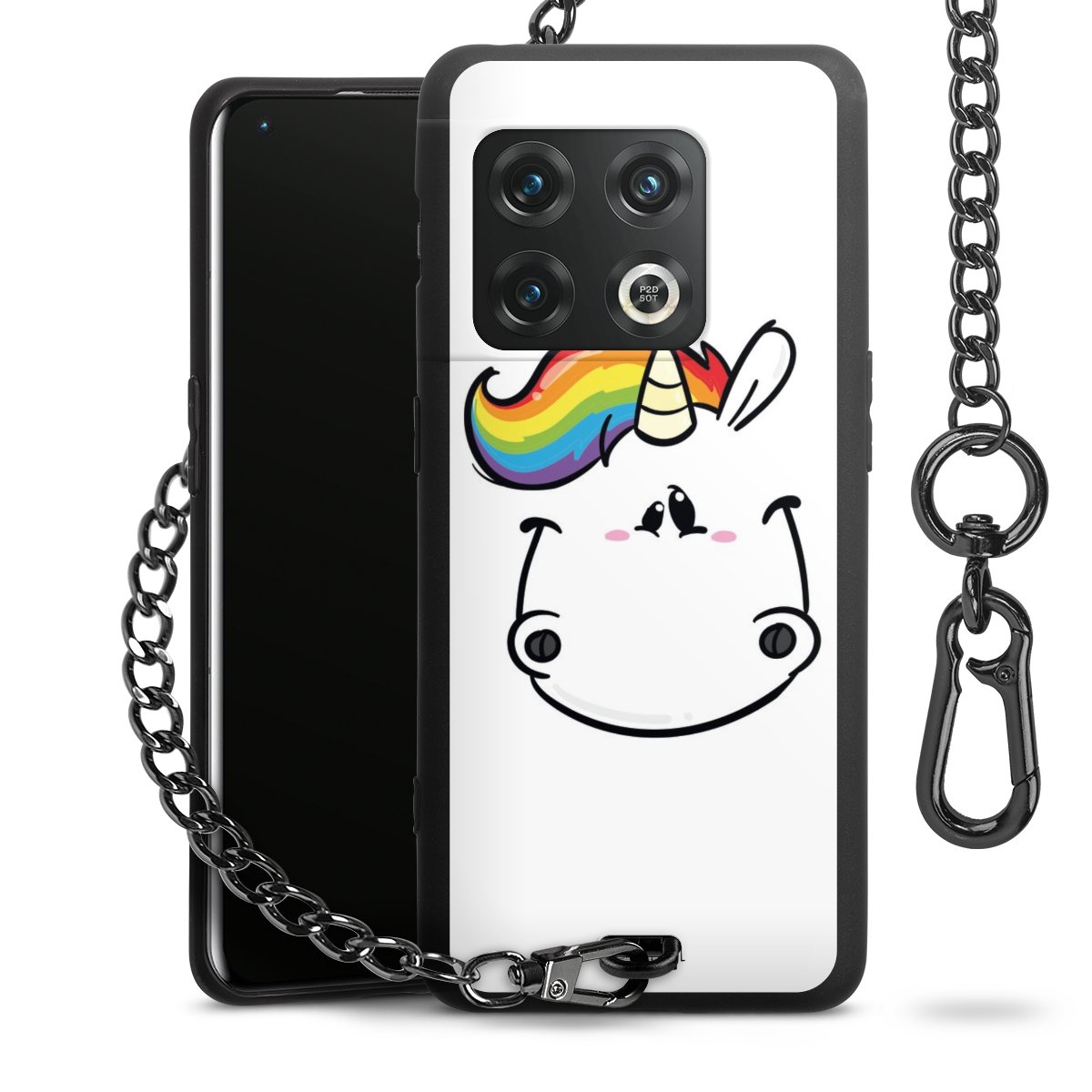 Die Handyhülle verfügt über eine mittig am unteren Rand platzierte Öse, an der die Metallkette stabil befestigt ist. Bestelle die Hülle einfach für Dein Smartphone-Modell, dann passt sie wie angegossen und Du brauchst sie bloß einmal anzudrücken. Handy in die Tasche, Karabiner an den Hosenbund – schon kann die Party starten.