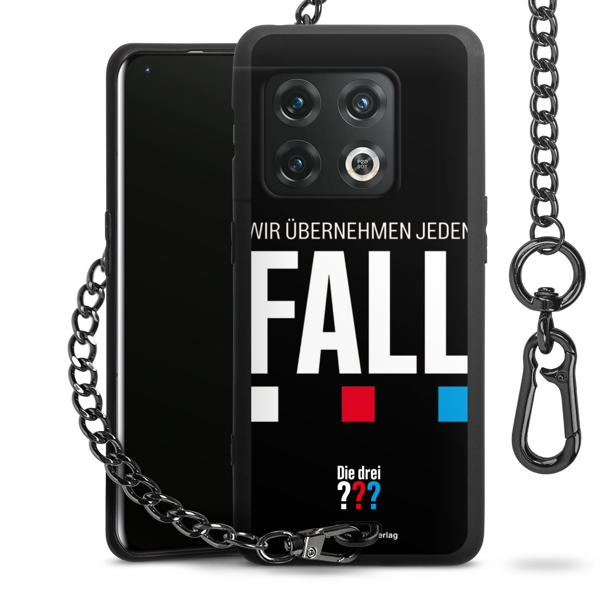 Die Handyhülle verfügt über eine mittig am unteren Rand platzierte Öse, an der die Metallkette stabil befestigt ist. Bestelle die Hülle einfach für Dein Smartphone-Modell, dann passt sie wie angegossen und Du brauchst sie bloß einmal anzudrücken. Handy in die Tasche, Karabiner an den Hosenbund – schon kann die Party starten.
