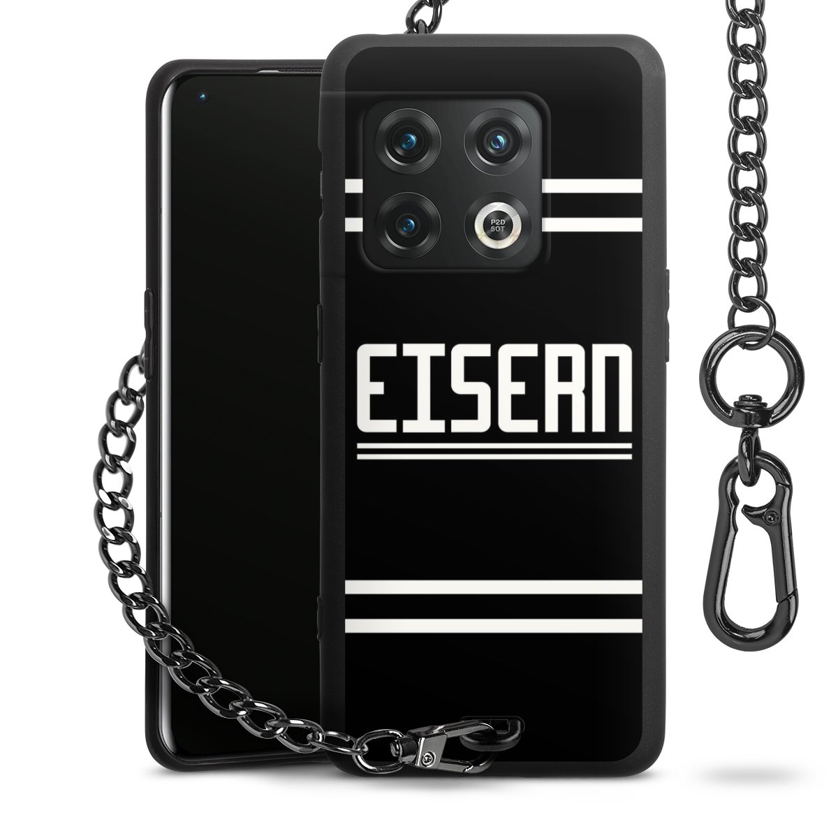 • Mattschwarze Handyhülle mit Metallkette