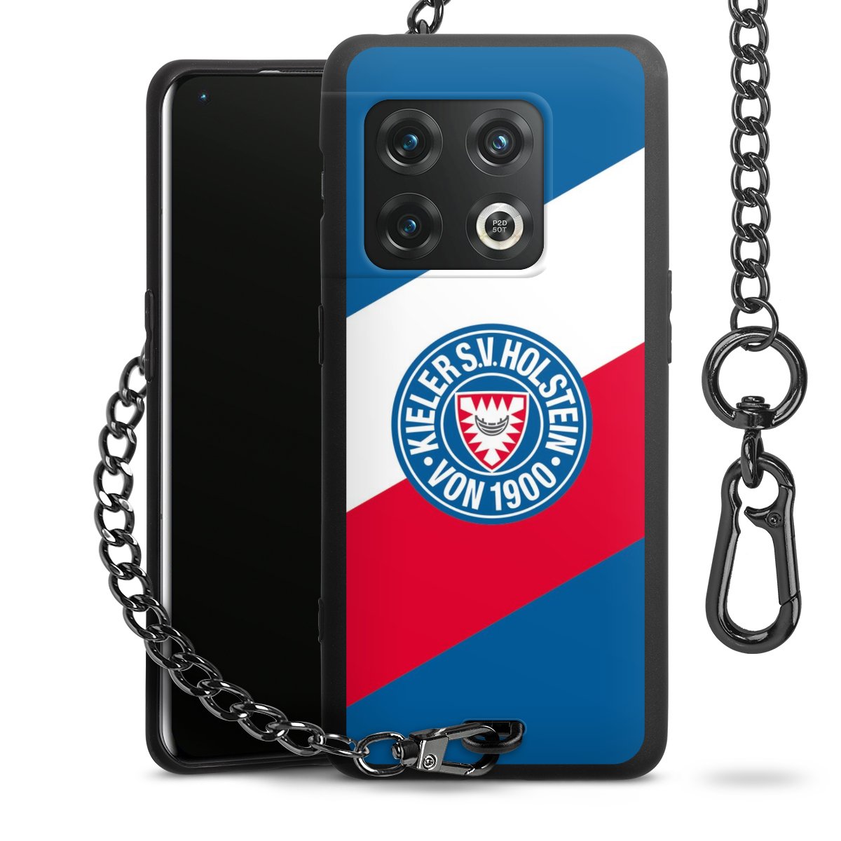 Die Handyhülle verfügt über eine mittig am unteren Rand platzierte Öse, an der die Metallkette stabil befestigt ist. Bestelle die Hülle einfach für Dein Smartphone-Modell, dann passt sie wie angegossen und Du brauchst sie bloß einmal anzudrücken. Handy in die Tasche, Karabiner an den Hosenbund – schon kann die Party starten.