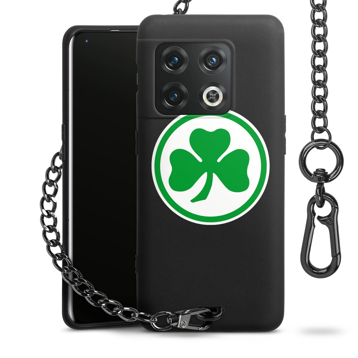 Die Handyhülle verfügt über eine mittig am unteren Rand platzierte Öse, an der die Metallkette stabil befestigt ist. Bestelle die Hülle einfach für Dein Smartphone-Modell, dann passt sie wie angegossen und Du brauchst sie bloß einmal anzudrücken. Handy in die Tasche, Karabiner an den Hosenbund – schon kann die Party starten.