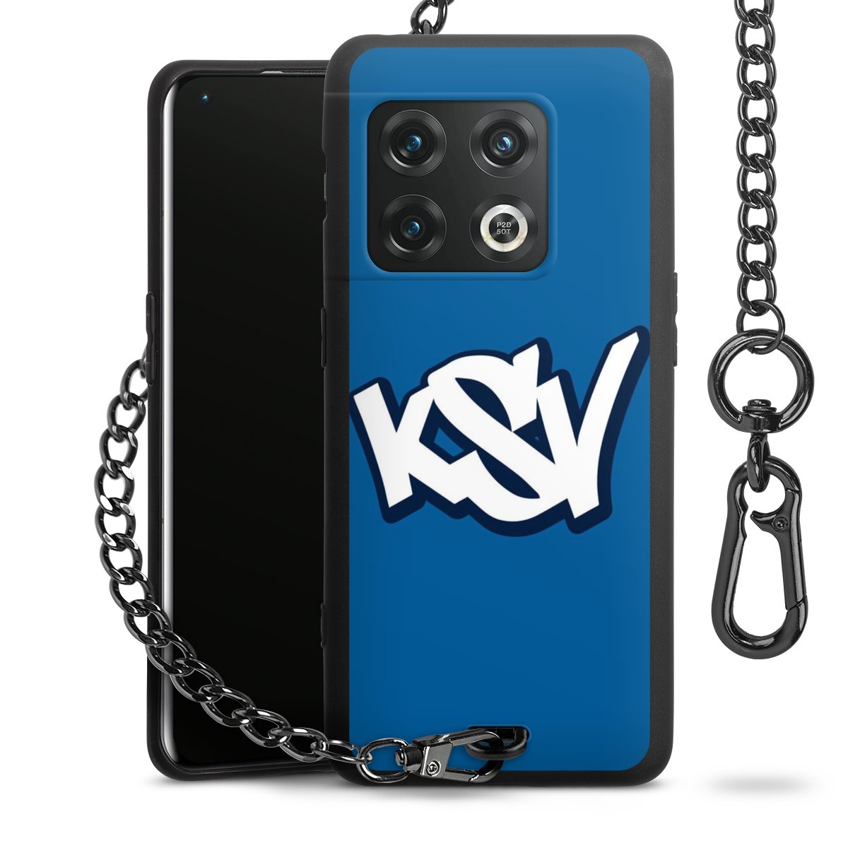 Die Handyhülle verfügt über eine mittig am unteren Rand platzierte Öse, an der die Metallkette stabil befestigt ist. Bestelle die Hülle einfach für Dein Smartphone-Modell, dann passt sie wie angegossen und Du brauchst sie bloß einmal anzudrücken. Handy in die Tasche, Karabiner an den Hosenbund – schon kann die Party starten.