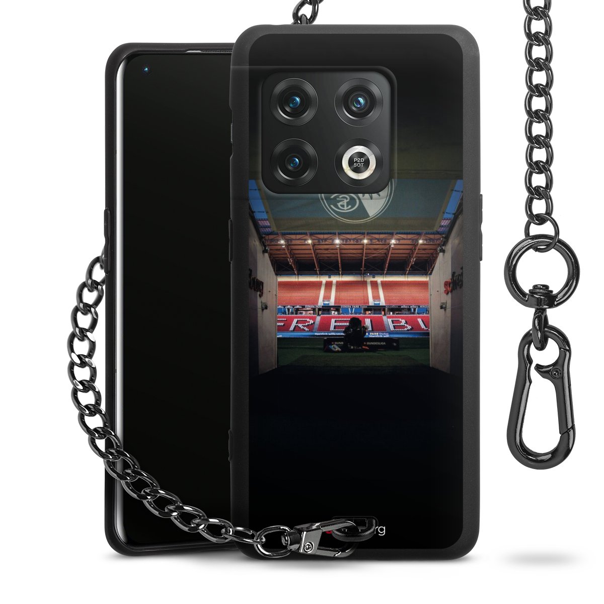 • Mattschwarze Handyhülle mit Metallkette