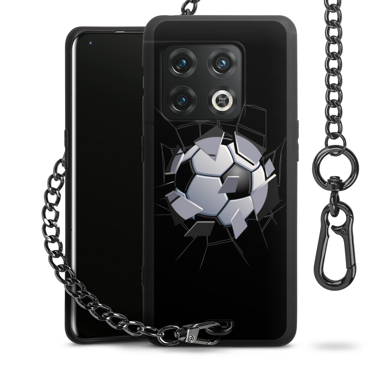 • Mattschwarze Handyhülle mit Metallkette