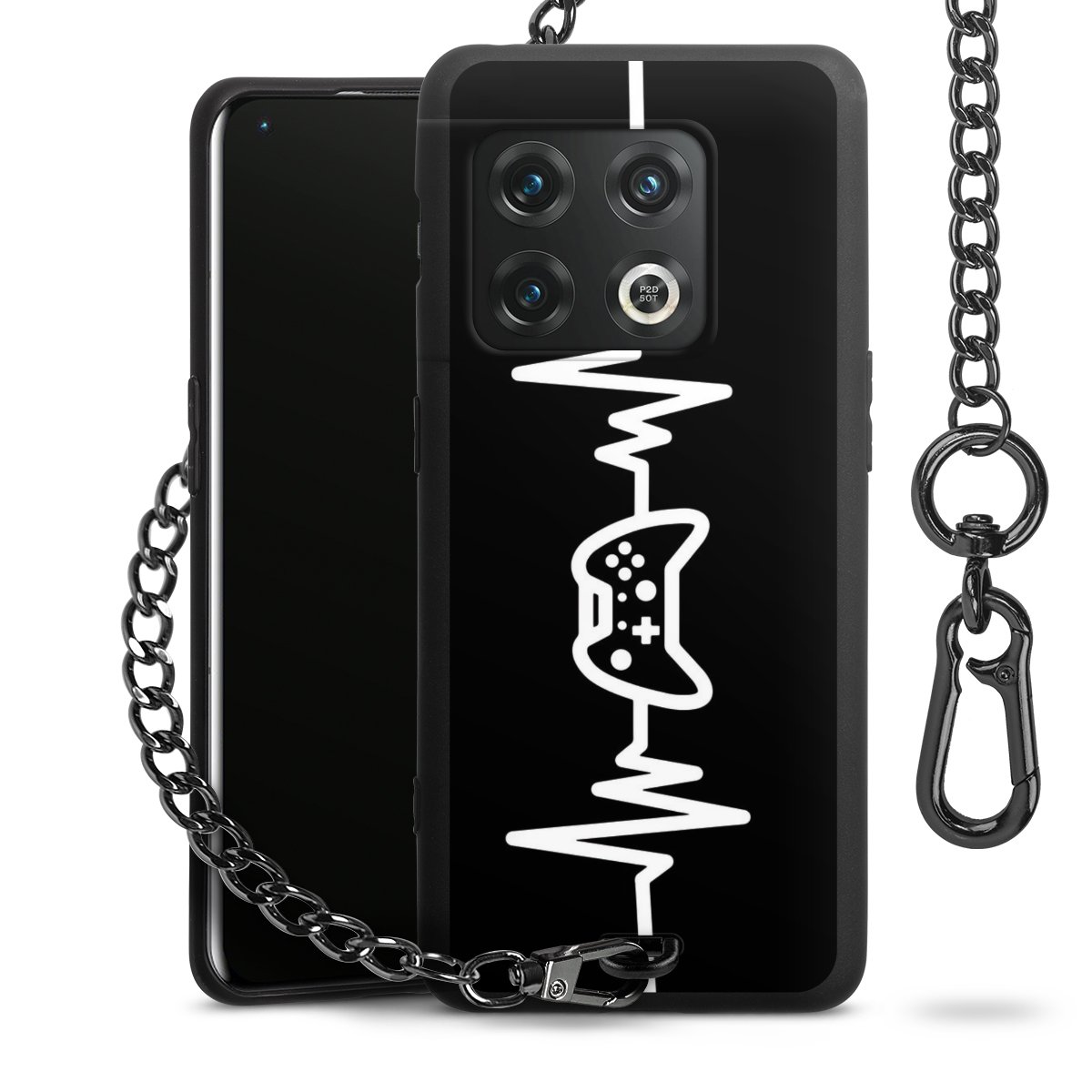 Die mattschwarze Silikon-Handyhülle besteht aus robustem TPU (thermoplastisches Polyurethan). Sie ist flexibel und schützt Dein Smartphone vor Stößen und Kratzern. Die Kette sowie der Karabinerhaken sind aus Metall in Gunmetal-Optik gefertigt. Für dieses Produkt kommen ausschließlich TÜV-geprüfte Materialien zum Einsatz.