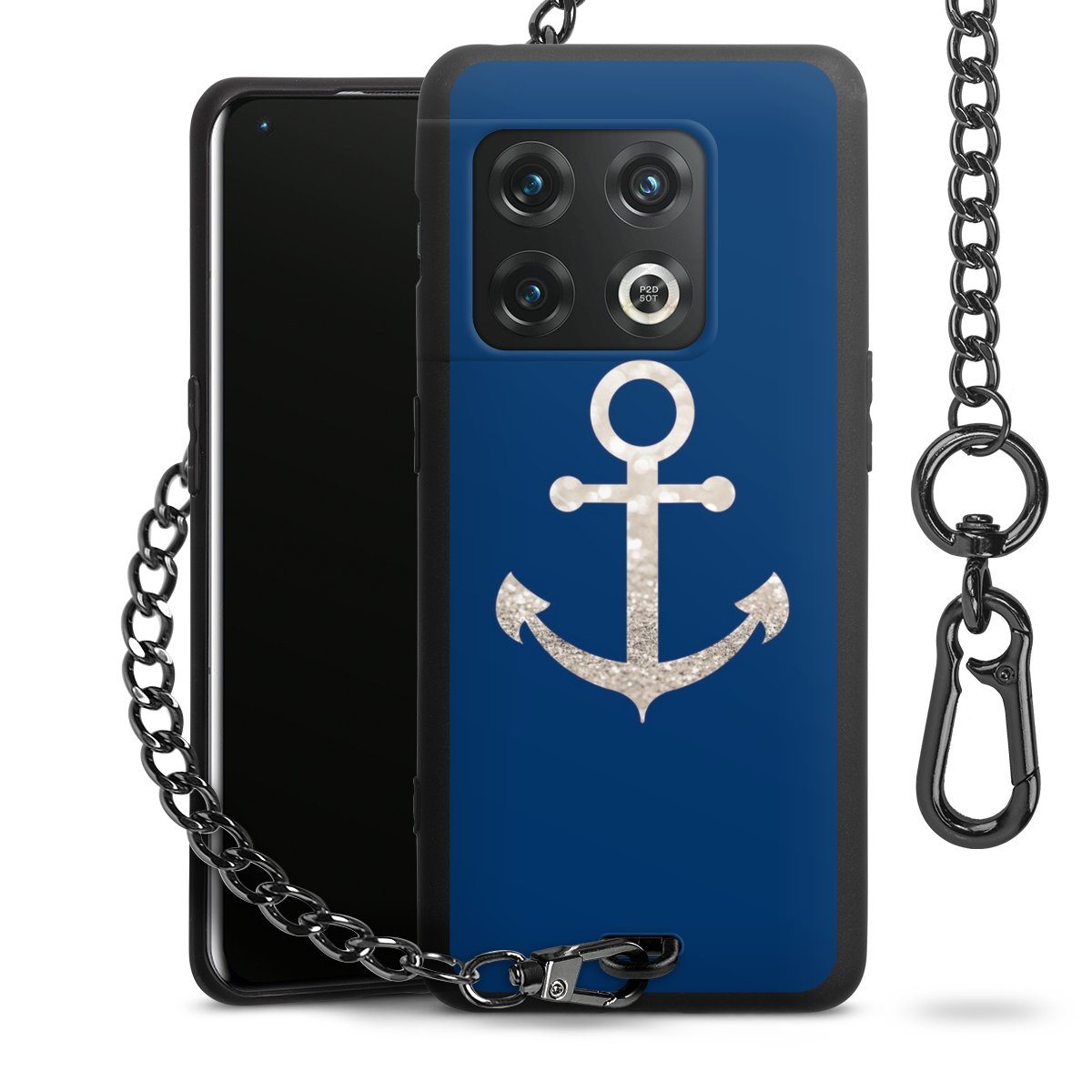 - Mattschwarze Handyhülle mit Metallkette
