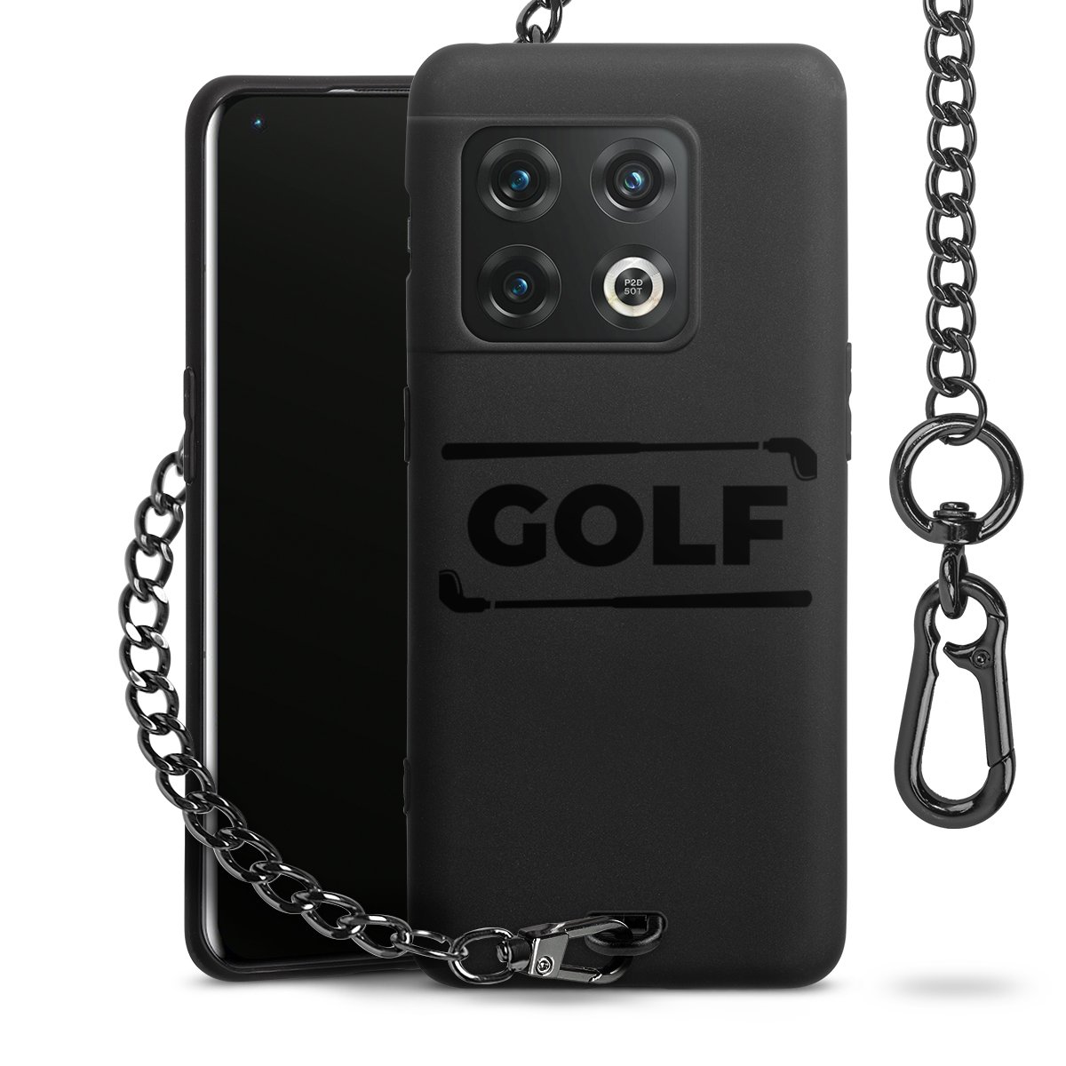 • Mattschwarze Handyhülle mit Metallkette