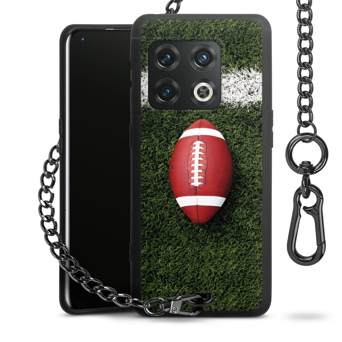 - Mattschwarze Handyhülle mit Metallkette