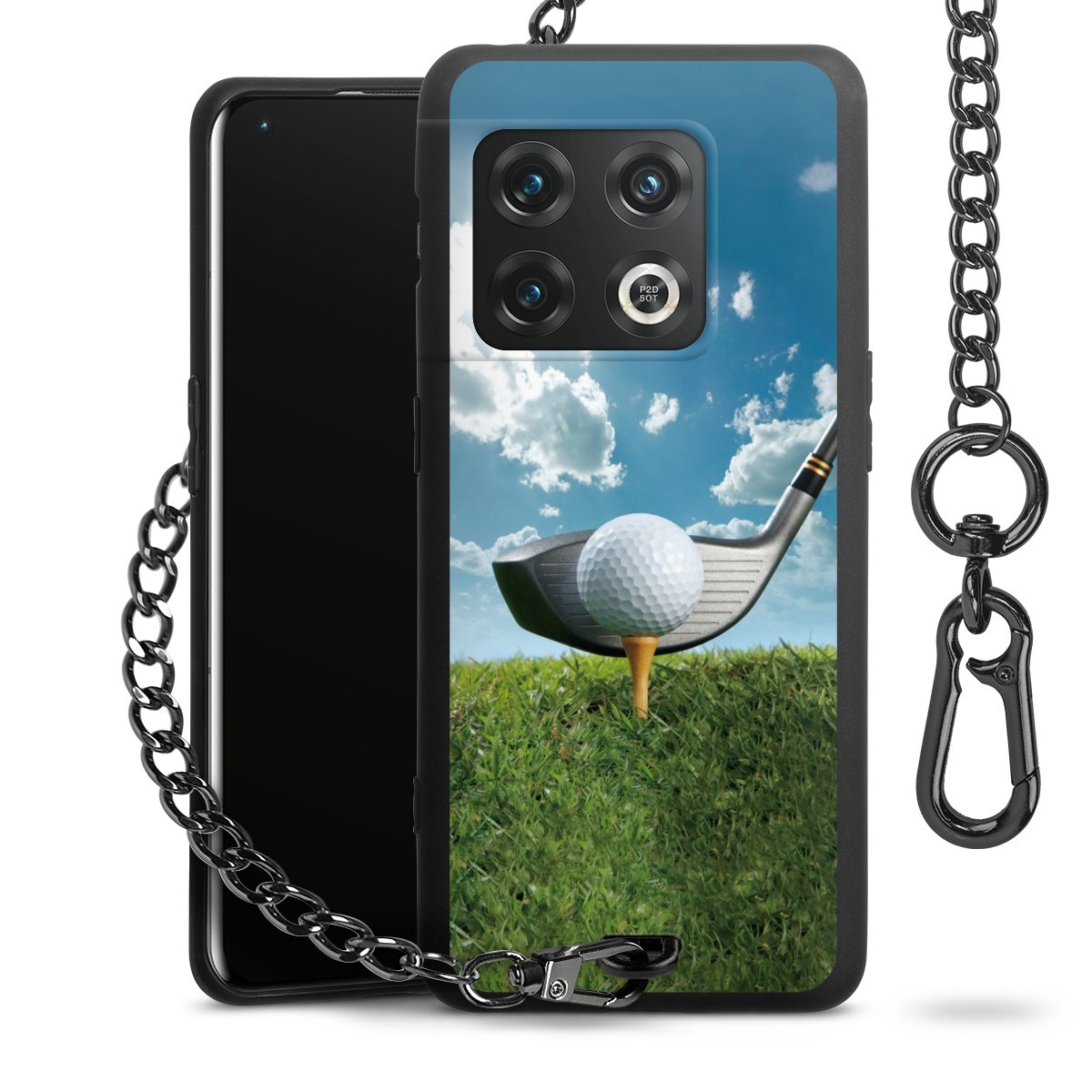 • Mattschwarze Handyhülle mit Metallkette
