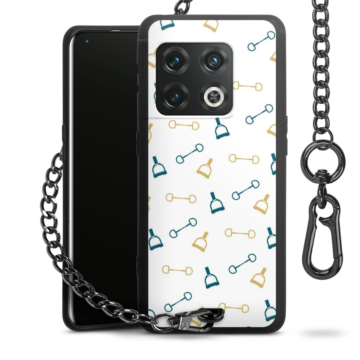 Die Handyhülle verfügt über eine mittig am unteren Rand platzierte Öse, an der die Metallkette stabil befestigt ist. Bestelle die Hülle einfach für Dein Smartphone-Modell, dann passt sie wie angegossen und Du brauchst sie bloß einmal anzudrücken. Handy in die Tasche, Karabiner an den Hosenbund – schon kann die Party starten.