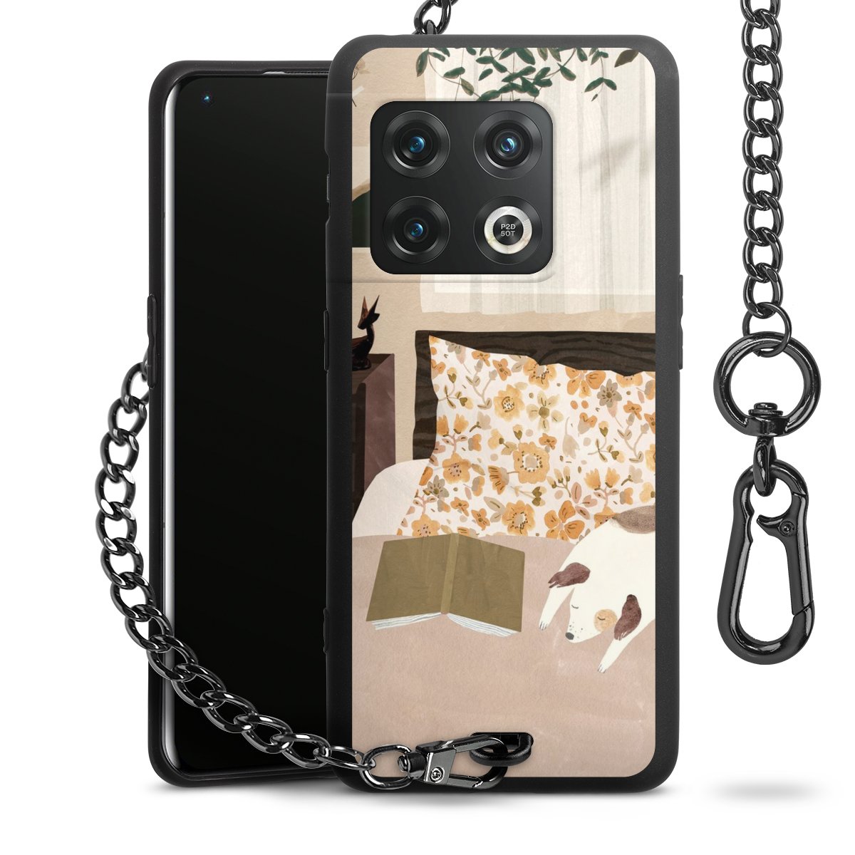 - Mattschwarze Handyhülle mit Metallkette