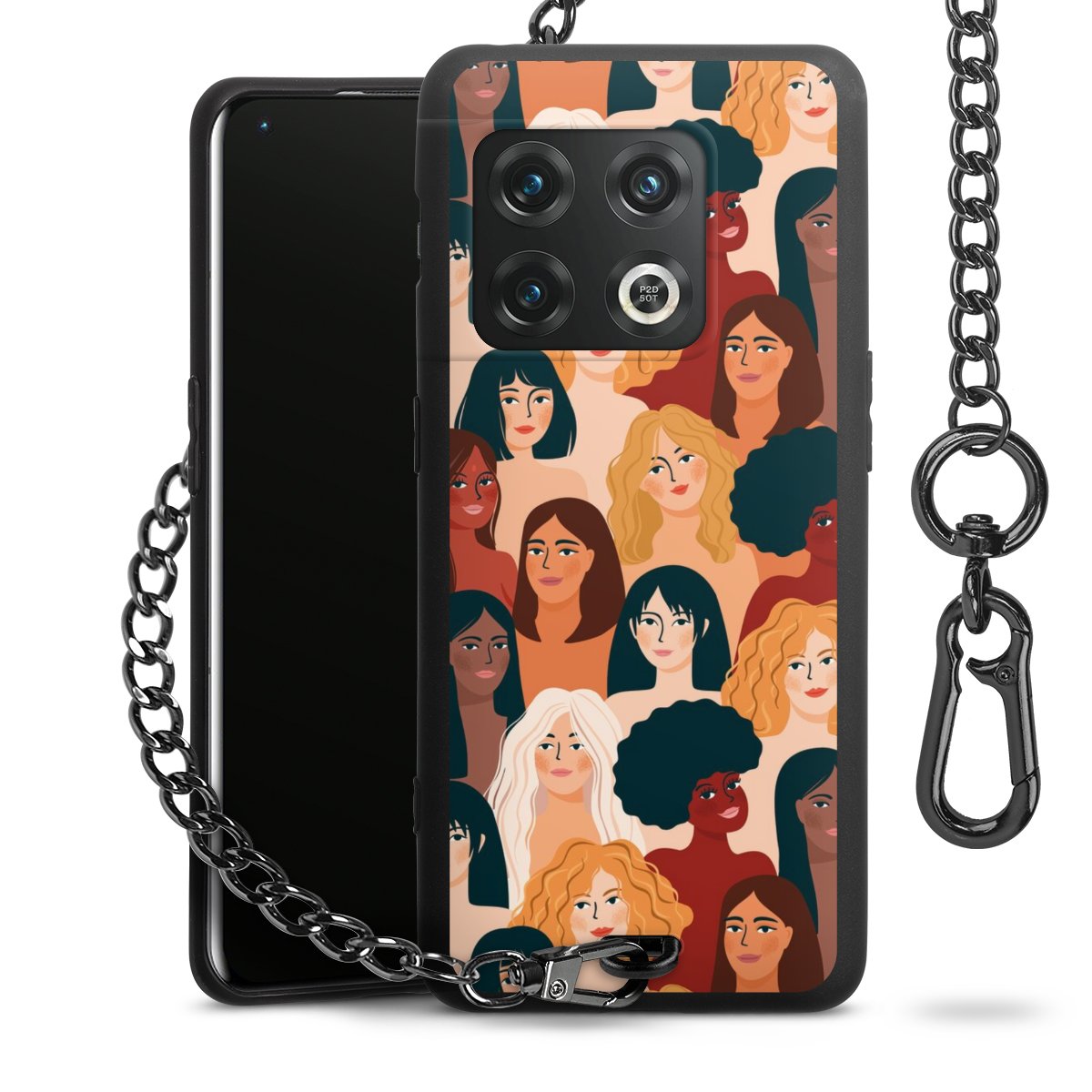 • Mattschwarze Handyhülle mit Metallkette