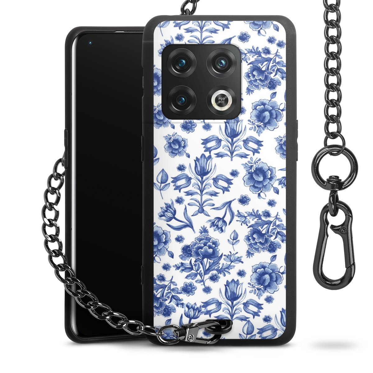 - Mattschwarze Handyhülle mit Metallkette
