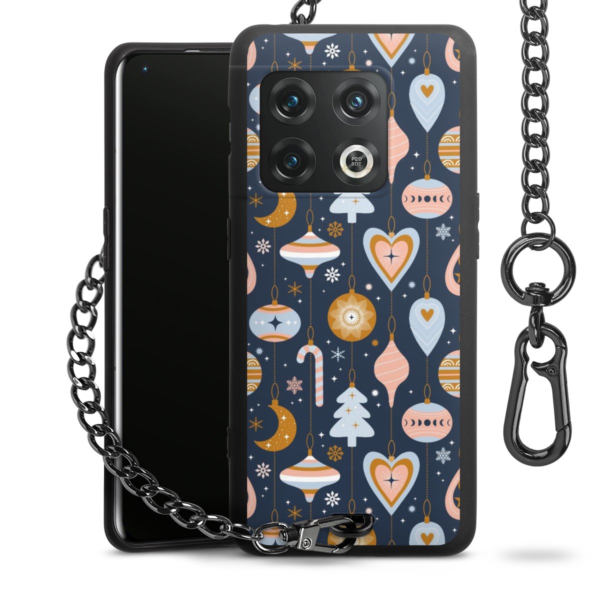 • Mattschwarze Handyhülle mit Metallkette