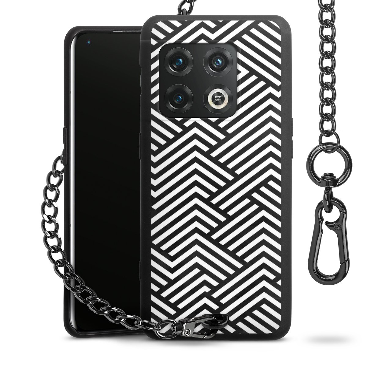 • Mattschwarze Handyhülle mit Metallkette