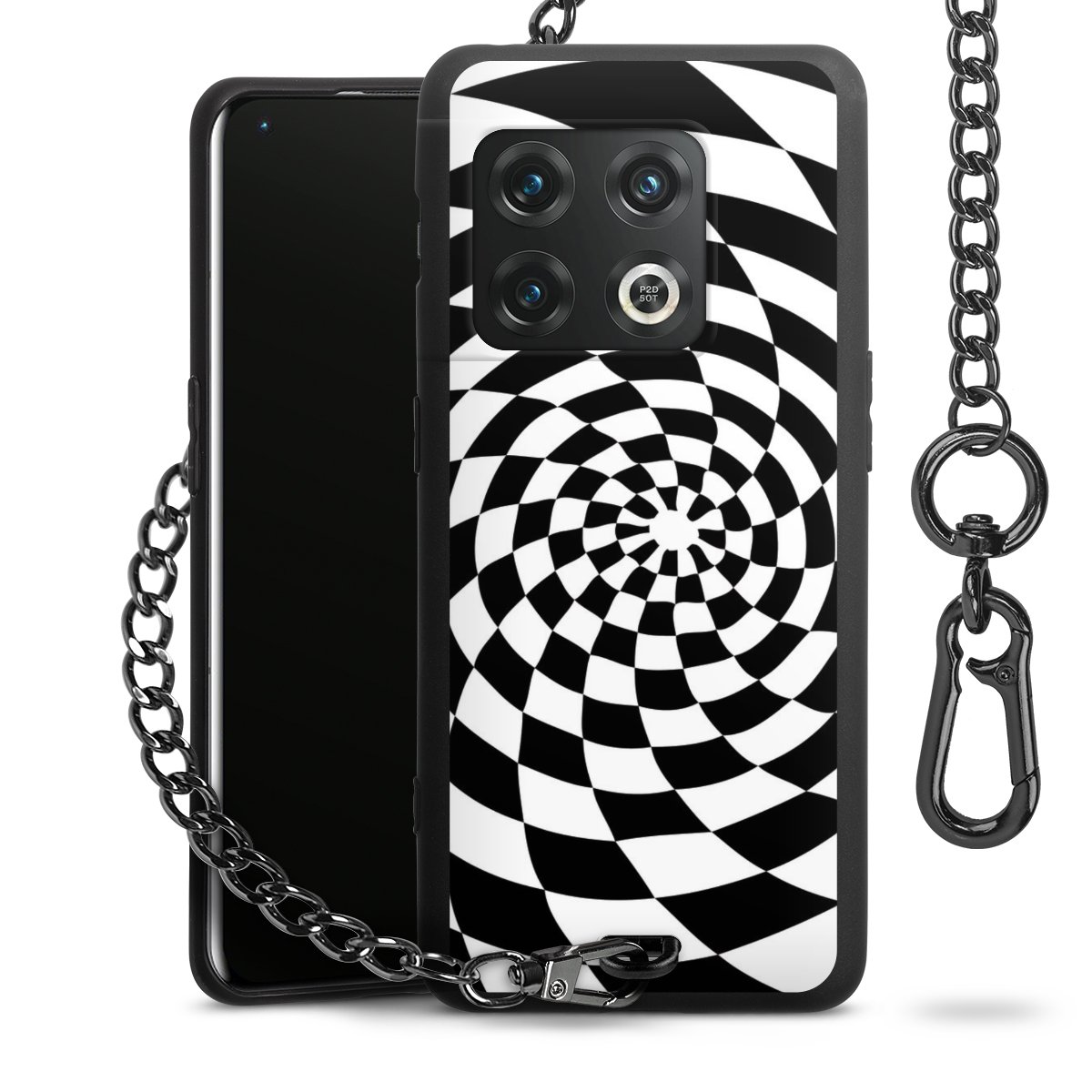 • Mattschwarze Handyhülle mit Metallkette